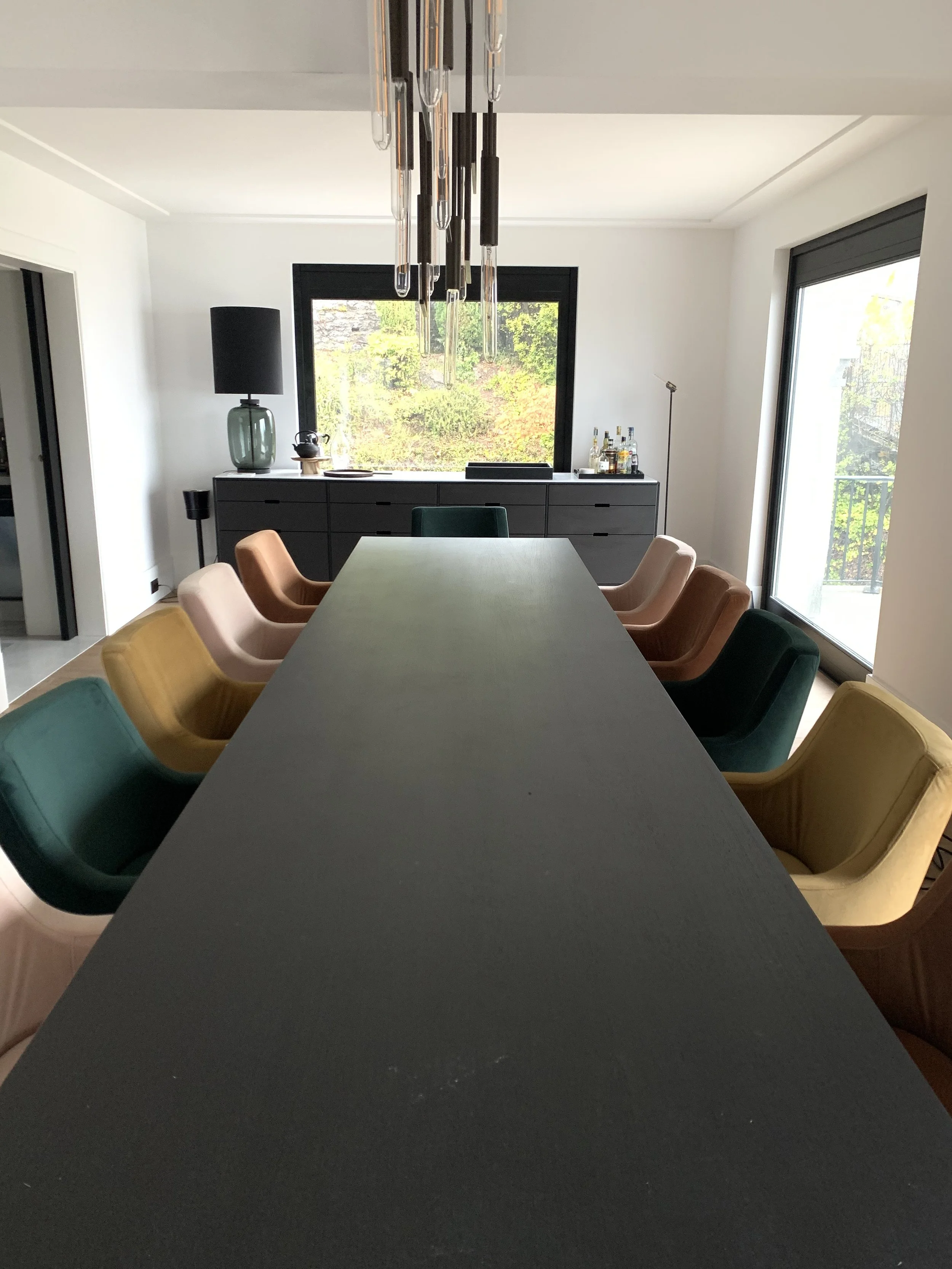 The primary task for Claudia was to create a separation between the dining area and the living area. She met this challenge with creativity and sophistication, ensuring that the transition between these spaces was seamless and aesthetically pleasing.