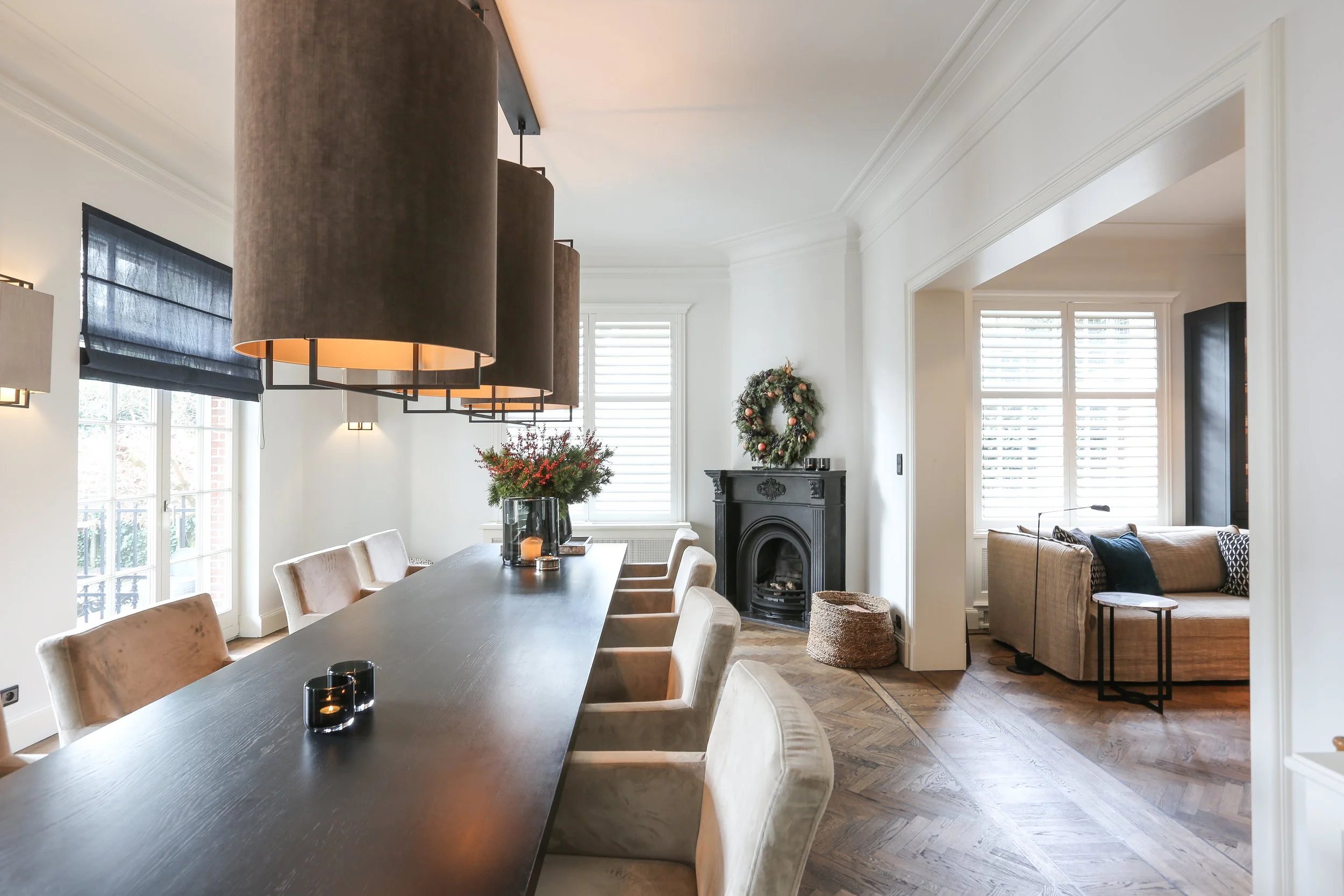Sans Souci in Antwerp, Belgium is an old building from the early 20th century. The task was to blend the antique details of the apartment with a modern touch, ensuring that both styles complement each other. Through the careful selection of materials, furniture, lighting, and fabrics, the owners' dream was brought to life.