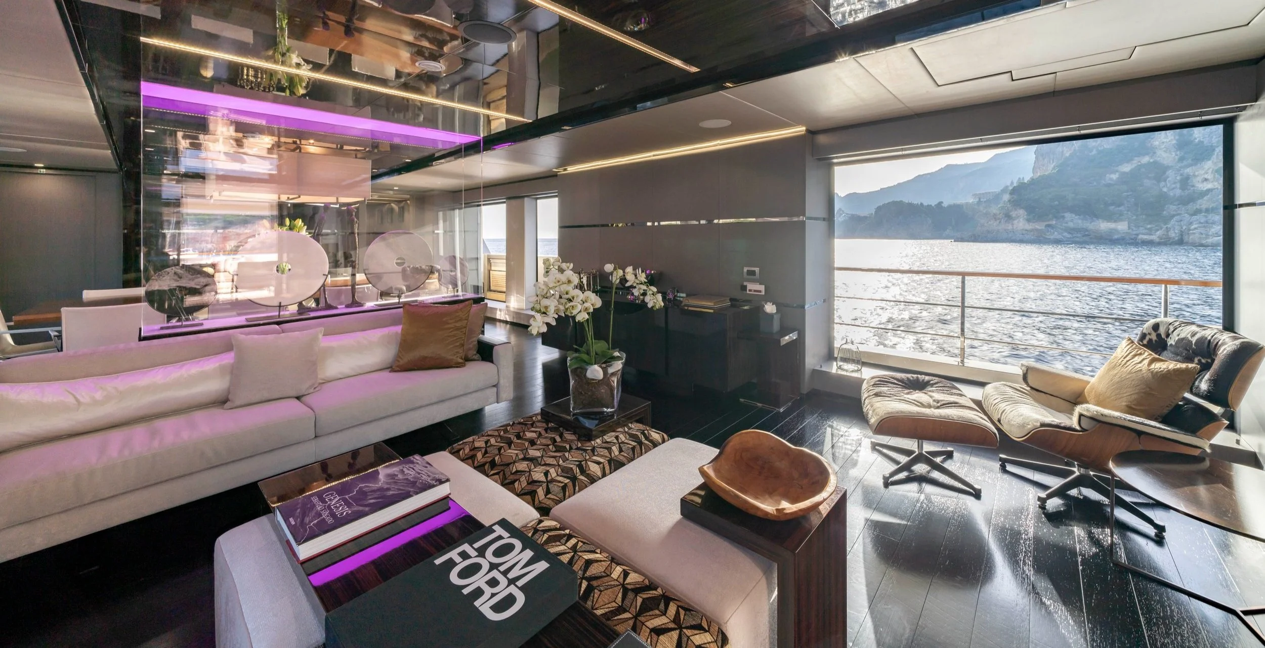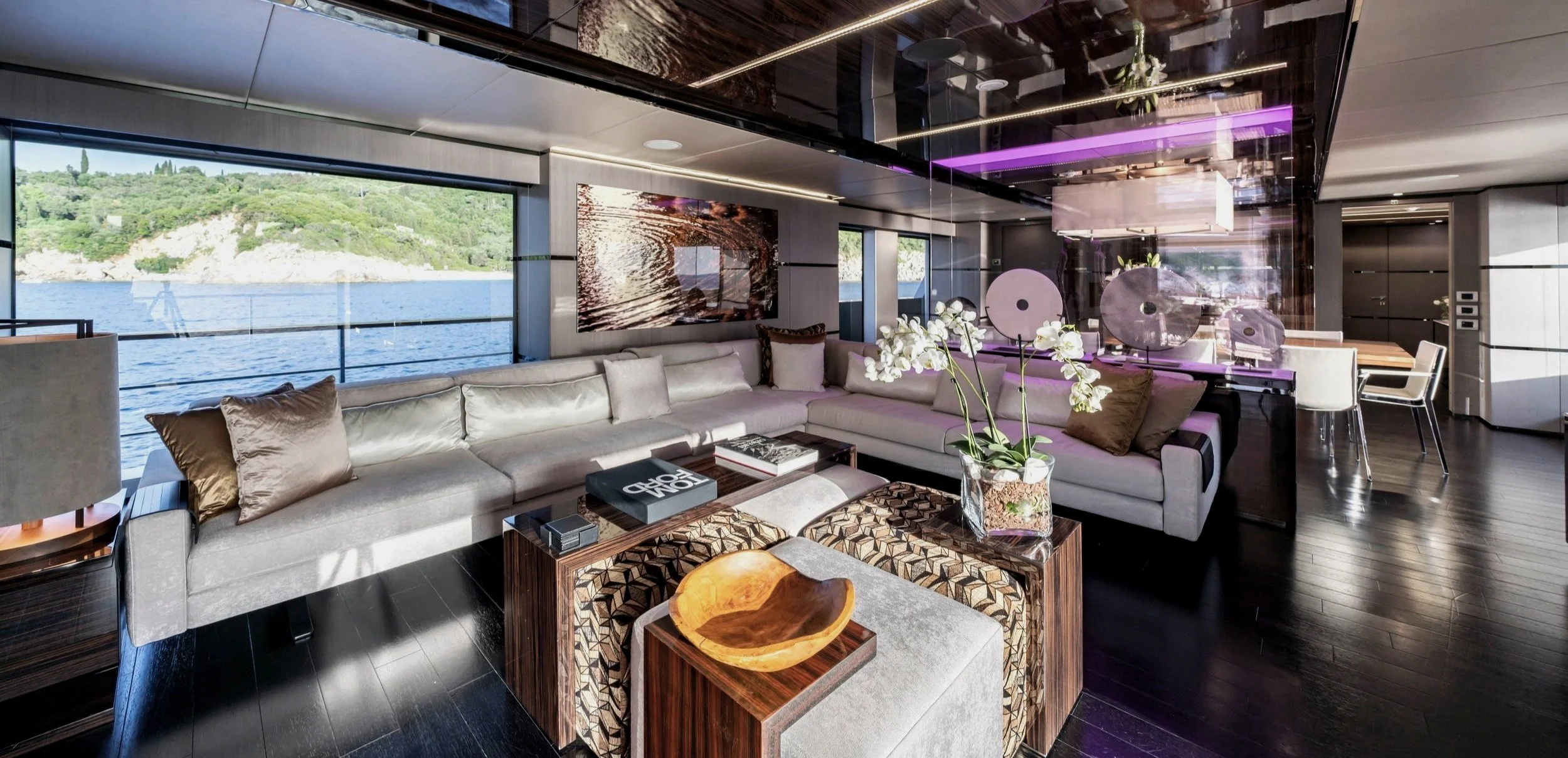 Further enriching the yacht's ambiance, Claudia selected luxurious fabrics from Evolution 21 and sophisticated lighting design by Layer. These elements contributed to creating a harmonious and inviting atmosphere that exemplifies refined taste and attention to detail.